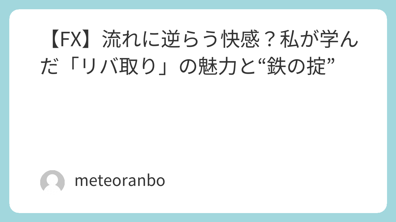 リバ取りは、実は一番臆病で、慎重な人のための技術なのかもしれません。