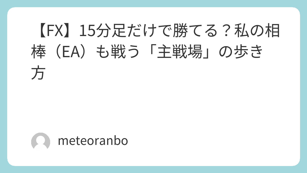 「15分足だけで勝てるのか?」という問いへの、私なりの答え。